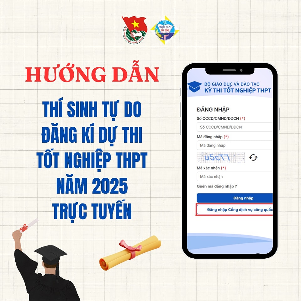 Hướng dẫn thí sinh tự do đăng ký dự thi tốt nghiệp THPT năm 2025 trực tuyến.